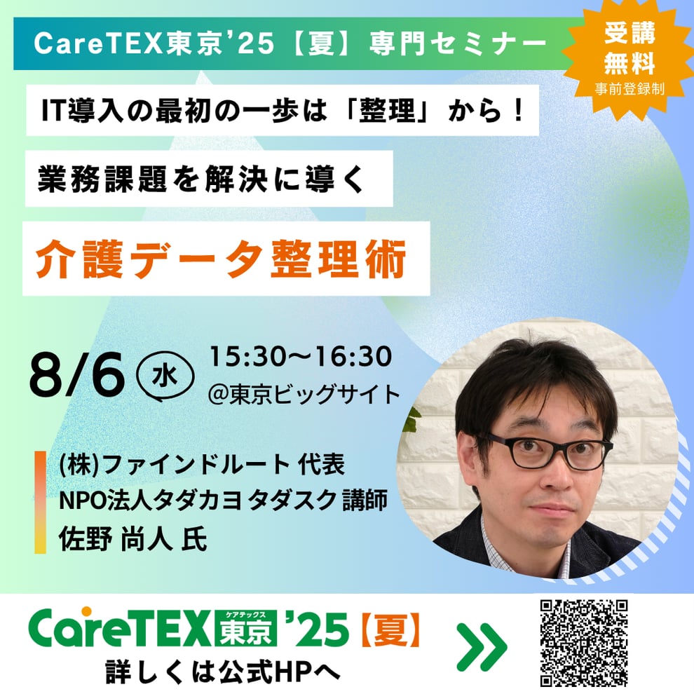 8月6日(水)15:30より、東京ビッグサイトで実施される「CareTEX東京’25【夏】」にて講演を行います!