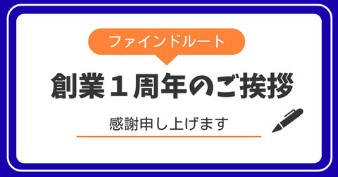 おかげさまで、株式会社ファインドルートは本日、創業1周年を迎えることができました。
